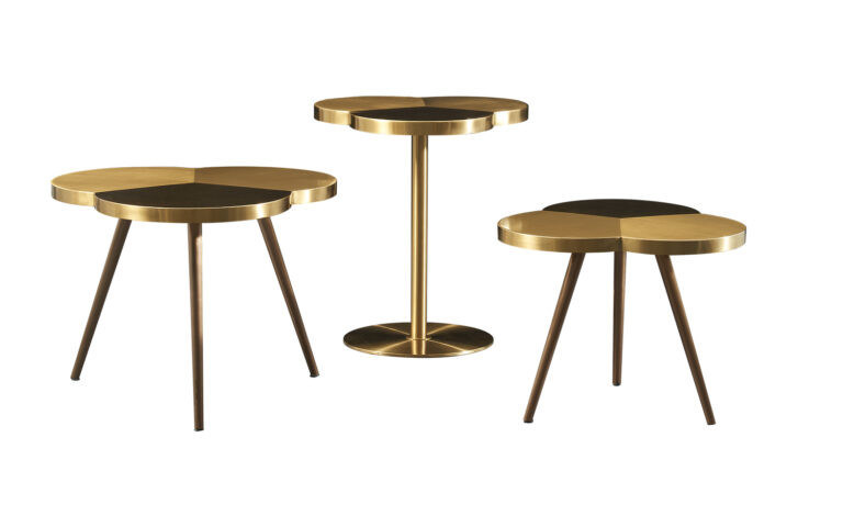 Form und Form: Der Nebentisch hat eine faszinierende Kleeblattform als Designkonzept.Die drei sich überlappenden Blätter des Kleeblückens bilden eine skurrile und visuell faszinierende SilhouetteDie sorgfältig ausgewogenen Proportionen und anmutigen Kurven der Kleebildform tragen zum allgemeinen Charme und der Eleganz des Tisches bei.