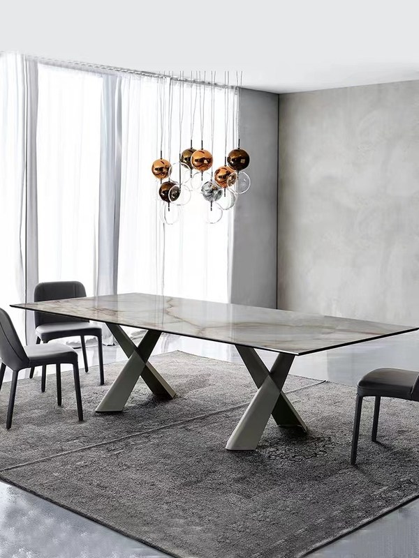 Vielseitigkeit: Ein Edelstahl-Marmor-Esstisch kann sich nahtlos mit verschiedenen Innenarchitekturstilen vermischen.oder sogar ÜbergangseinstellungenEs kann als Schwerpunkt in einem minimalistischen Raum dienen oder einem traditionelleren Essbereich einen Hauch von Eleganz verleihen.